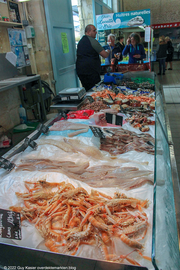 Weer buitengekomen, begeven we ons naar de andere markthall waarin alleen vis en schelpdieren worden verkocht, een bijzondere ervaring.